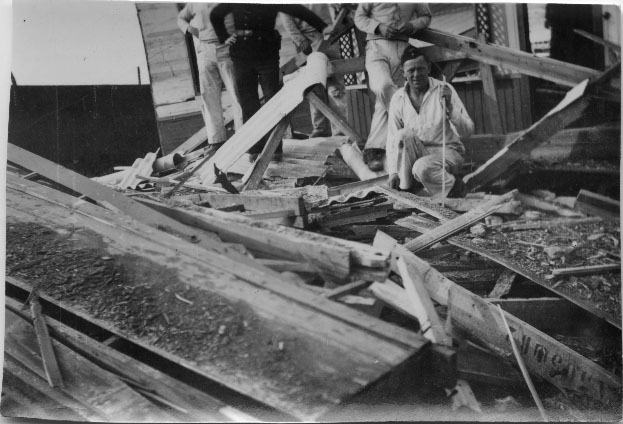 Soldats marins allemands cherchant parmi les décombres à Laleu à La Rochelle entre 1943 et 1944