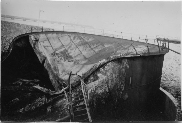 Reste d'un bac d'essence ayant brûlé à La Rochelle en juin 1940