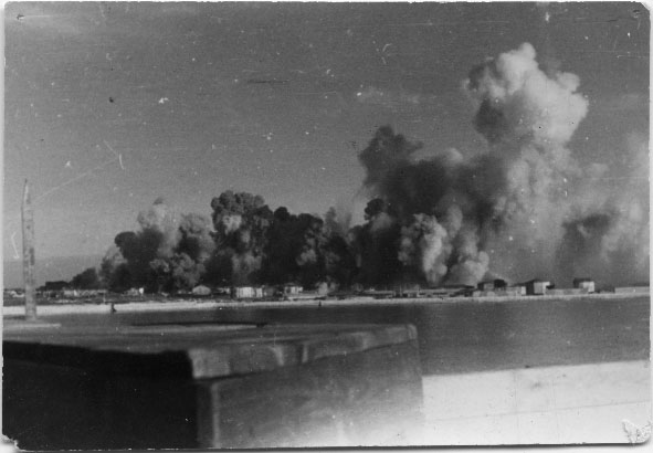 Bombardement de La Pallice vu du môle d'escale le 18 août 1944 à La Rochelle pendant la seconde guerre mondiale.