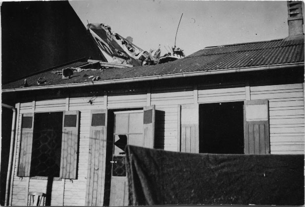 Un avion américain détruit par la DCA le 8 ou 9 août 1944 à La Pallice. Les aviateurs se sont éjectés et ont été faits prisonniers par les allemands.