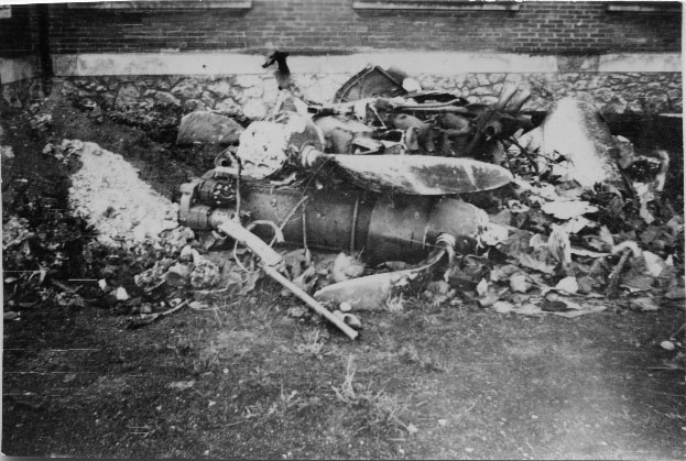 Restes d'un moteur et d'une hélice d'avion en France, pendant la Seconde Guerre mondiale.