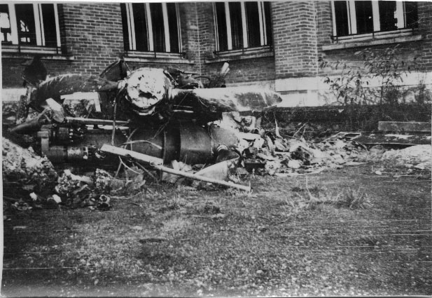 Restes d'un moteur et d'une hélice d'avion en France, pendant la Seconde Guerre mondiale