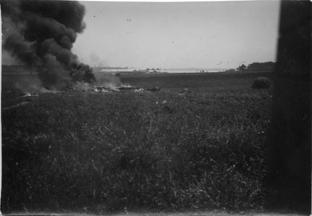 Un avion venant d'être abattu en 1940 vers la Pallice à La Rochelle, pendant la Seconde Guerre mondiale.