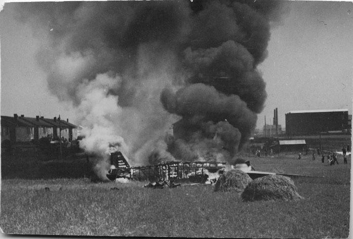 Un avion américain en feu après avoir été abattu par les allemands le 26 octobre 1944 à La Pallice.