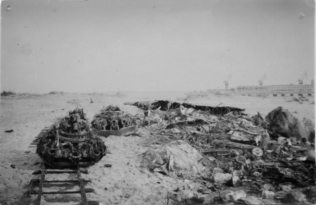 Restes d'un avion écrasé sur la plage des Sablanceaux sur l'Île de Ré en 1943-1944