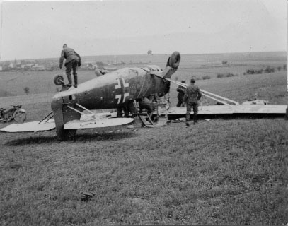 Avion allemand retourné pendant la Seconde Guerre Mondiale en 1940 en France