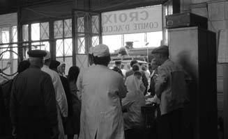 Reconstitution de l'arrivée des réfugiés Belges à la gare de La Rochelle pendant la seconde guerre mondiale pour le tournage du film "Le train" de Pierre Granier-Deferre tourné du 13 au 16 juillet 1973