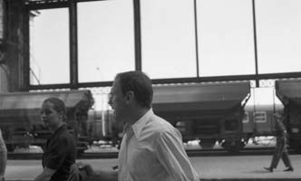 Romy Schneider et Jean Louis Trintignant dans la gare de La Rochelle pour le tournage du film "Le train" de Pierre Granier-Deferre du 13 au 16 juillet 1973