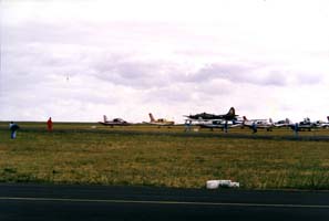 Forteresses volantes et chasseurs (avion américain et anglais ayant bombardés la France et l'Allemagne pendant la seconde guerre mondiale) ressortis pour une fête aérienne à l'aérodrome de Laleu (La Rochelle) vers 1990