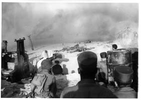 Scène de guerre et équipe technique sur le tournage du film "Le jour le plus long" sur la plage de l'île de Ré (St Clément des Baleines ou Rivedoux) entre 1961 et 1962