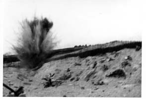 Explosion pour les besoins du tournage du film "Le jour le plus long" sur la plage de l'île de Ré (St Clément des Baleines ou Rivedoux) entre 1961 et 1962