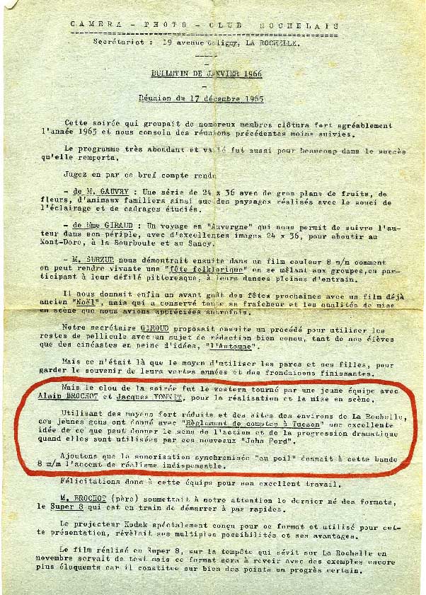 Bulletin (page 1) du Caméra Club Rochelais datant de janvier 1966