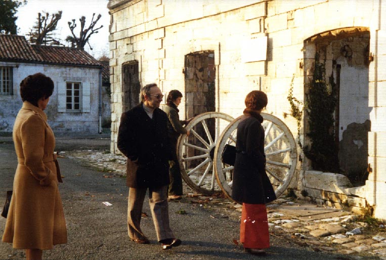 L'extérieur de la Corderie Royale en 1970 avec une roue de charrette d'un tombereau.