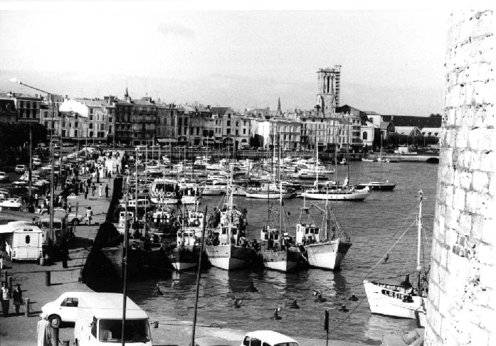 Vue du Port de La Rochelle en 1975 avec les bateaux et voitures stationnant