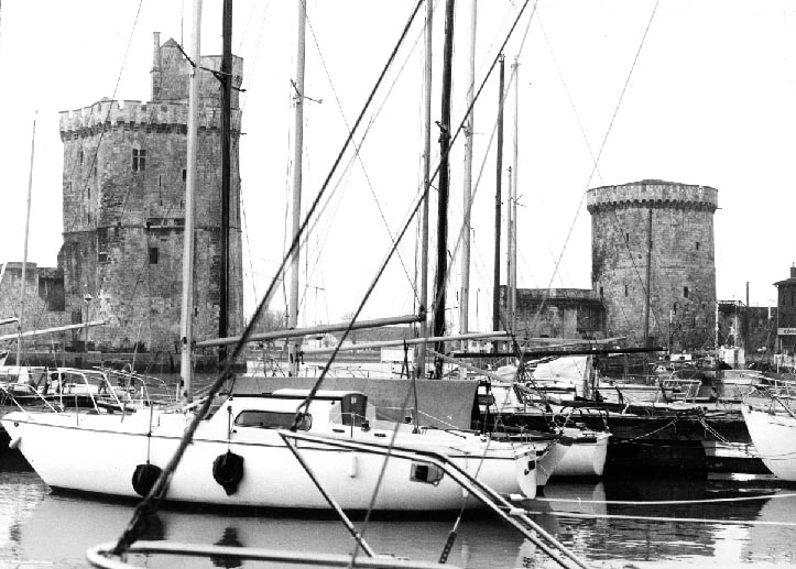 Bassin du port avec quelques bateaux de plaisance en 1975 à La Rochelle