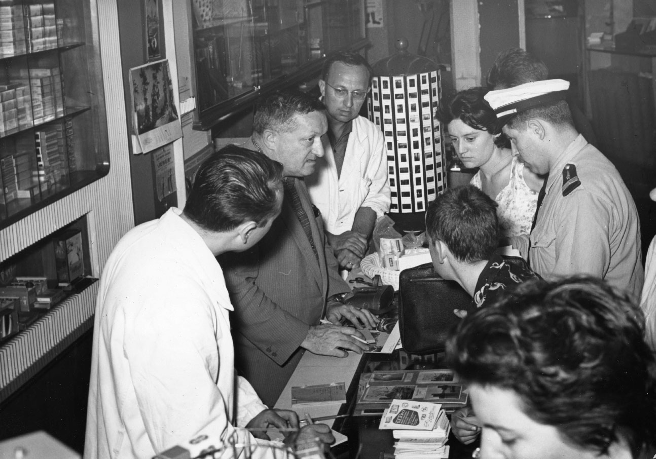La patron et son personnel à l'intérieur d'un magasin de photo en 1970 à La Rochelle