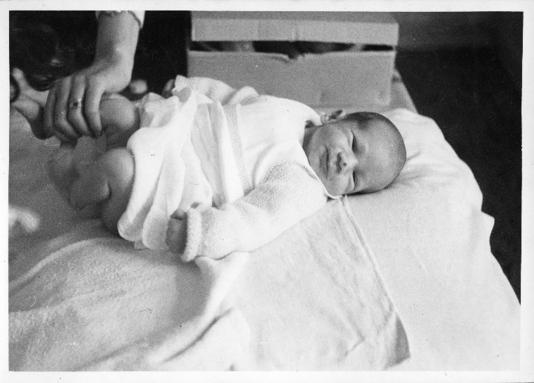 Un bébé se faisant changer à la maternité de La Rochelle en 1959
