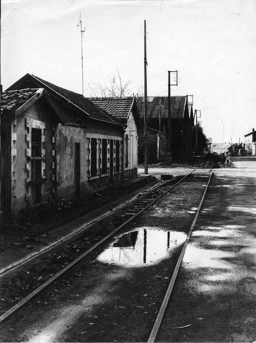 Quartier de la Ville en Bois en 1975 à La Rochelle, avec rails du tramway.