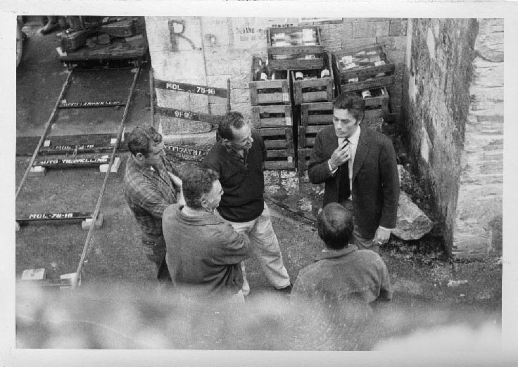 Alain Delon et l'équipe du film "Les Aventuriers" de Robert Enrico sur l'île d'Aix en 1966