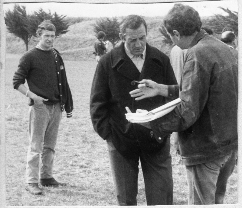 Lino Ventura et l'équipe du film "Les Aventuriers" de Robert Enrico sur l'île d'Aix en 1966