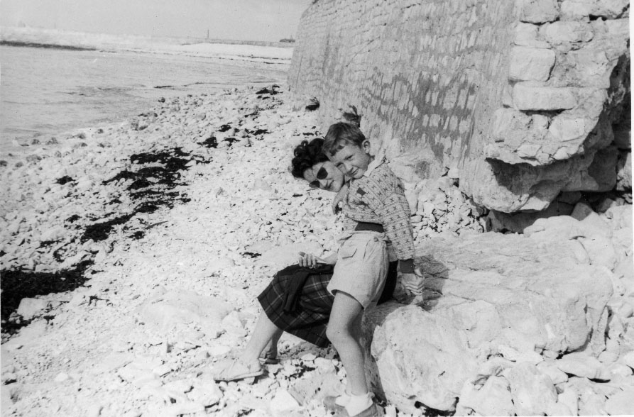 Une maman et son fils à la plage de Chef de Baie à La Rochelle vers 1955