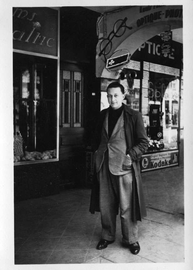 Robert Brochot devant la vitrine du magasin de photos Morillon rue Chaudrier en 1937 à La Rochelle.