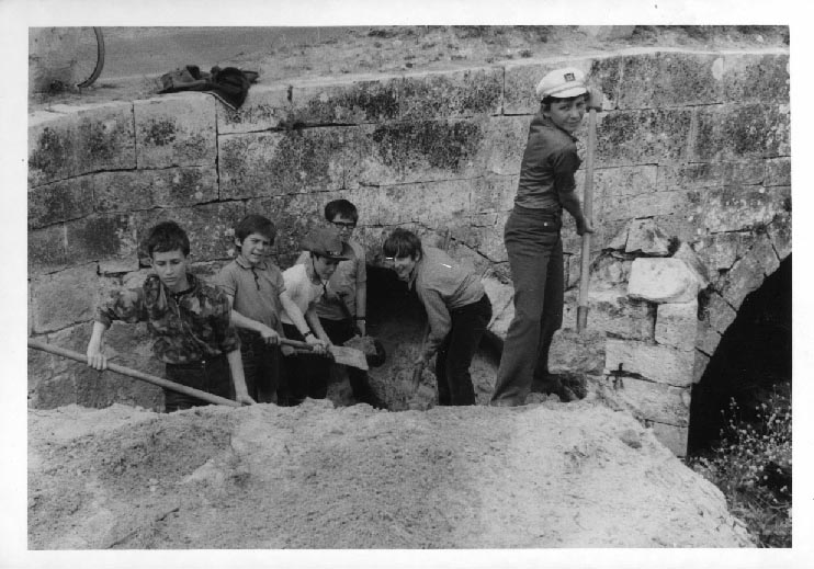 Six jeunes garçons au Pont de la Pierre à Aytré avant sa reconstruction vers 1970