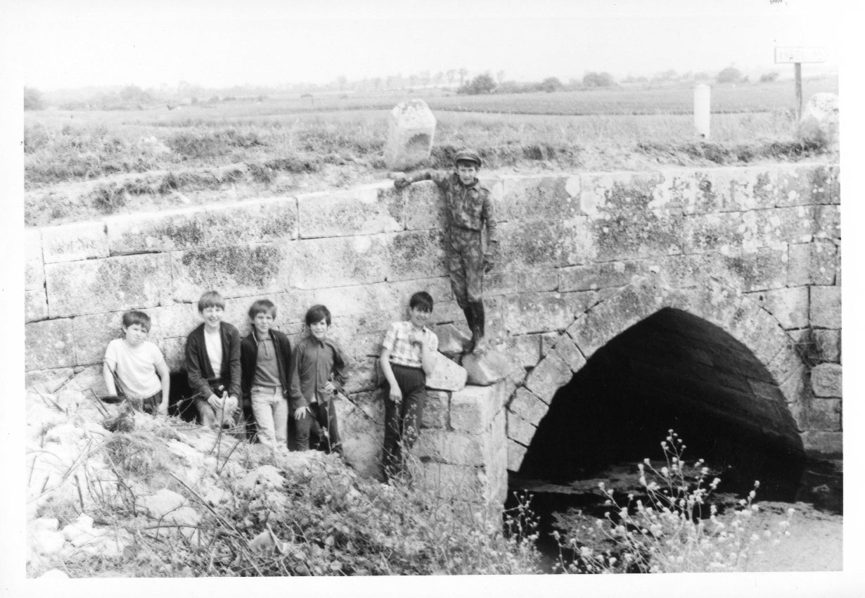 Six garçons sur le Pont de la Pierre à Aytré avant sa reconstruction vers 1970