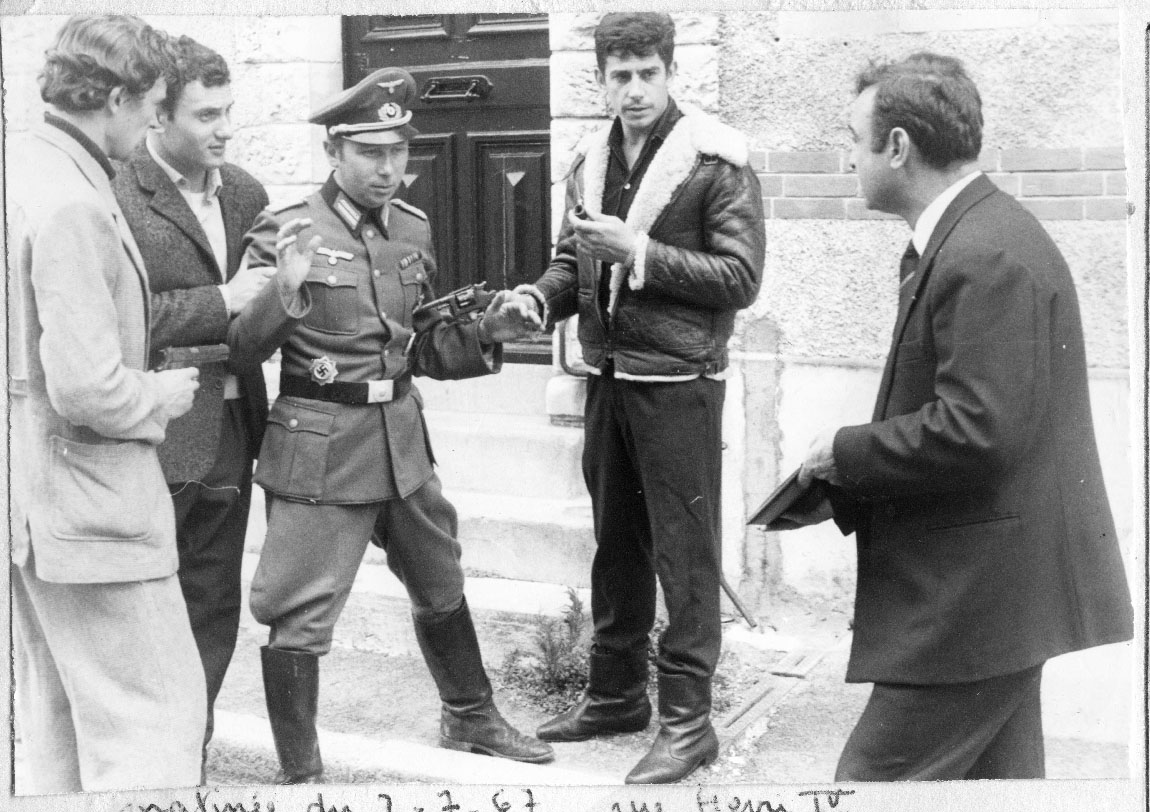 Tournage du film amateur "Warum" tourné par Alain Brochot et Jacky Yonnet à La Rochelle entre 1966 et 1967. Ce film retrace une histoire de résistance imaginaire.
