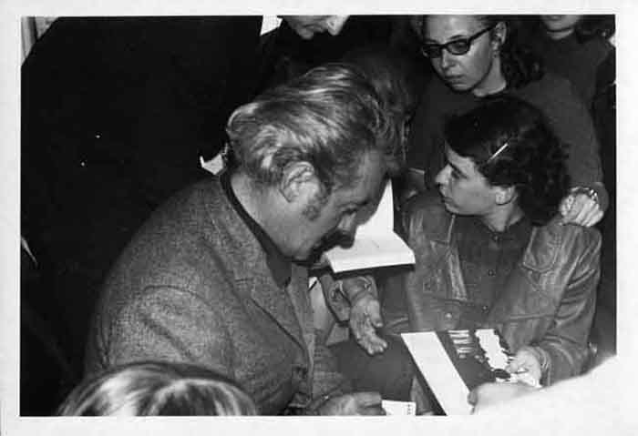 Félix Leclerc signant des autographes en 1970 à la Maison de la Culture de La Rochelle
