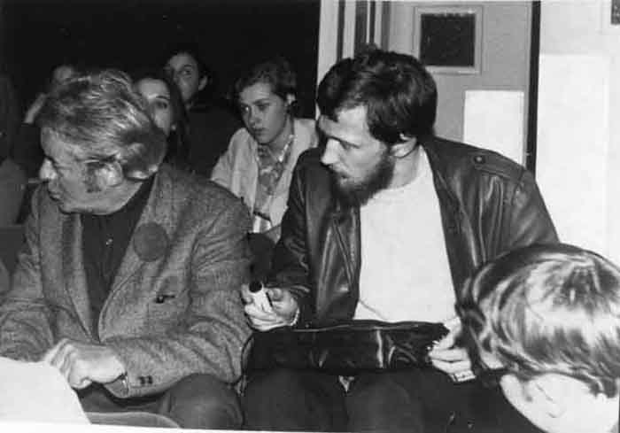 Un jeune homme enregistre une ITW de Félix Leclerc en 1970 à la maison de la culture de La Rochelle