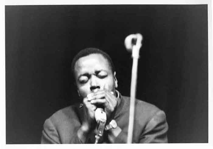 L'harmoniciste de John Lee Hooker en concert à la maison de la culture de La Rochelle en 1969 ou 1970oniciste de