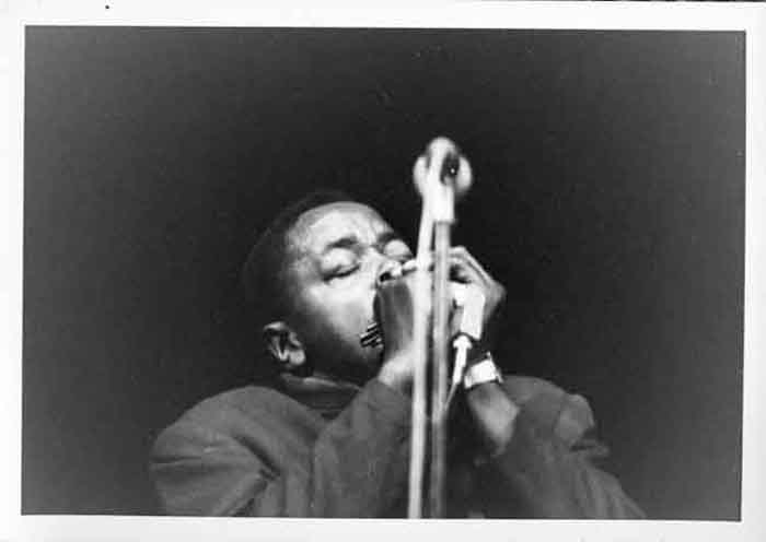 L'harmoniciste de John Lee Hooker en concert à la maison de la culture de La Rochelle en 1969 ou 1970oniciste de