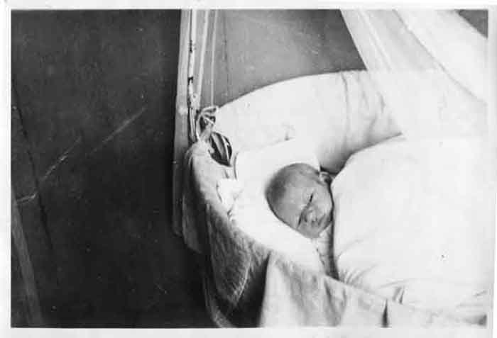 Un bébé dans son couffin à la Maternité de La Rochelle en 1948