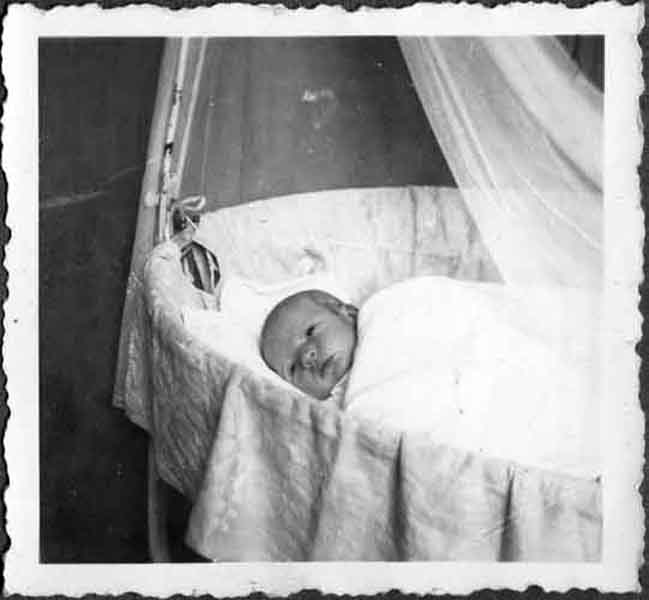 Un bébé dans son couffin à l'hôpital de La Rochelle en 1948