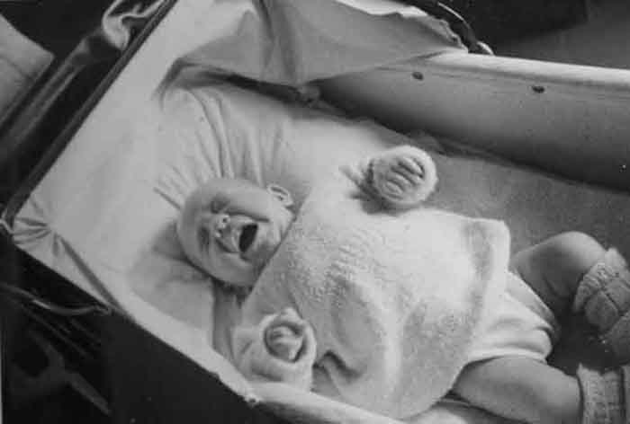 Un bébé qui pleure dans sa poussette entre 1948 et 1951 à Aytré