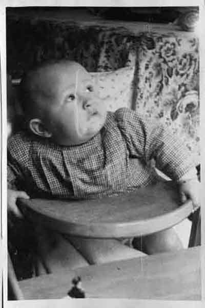 Un bébé sur sa chaise haute entre 1948 et 1951 à Aytré