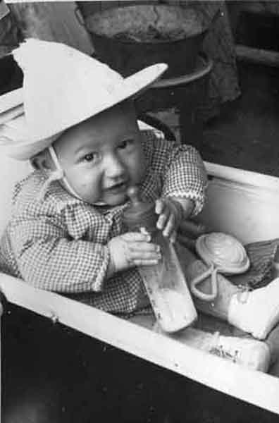 Un bébé et son biberon dans sa poussette entre 1948 et 1951 à Aytré