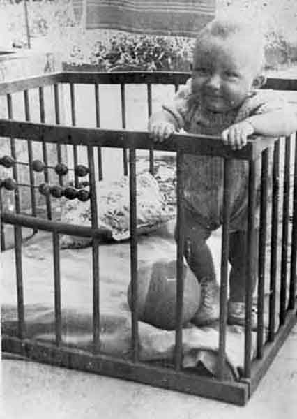 Un petit enfant dans son parc entre 1948 et 1951 à Aytré