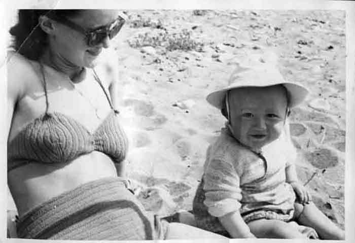 Petit enfant et sa maman à la plage entre 1948 et 1951 à Aytré