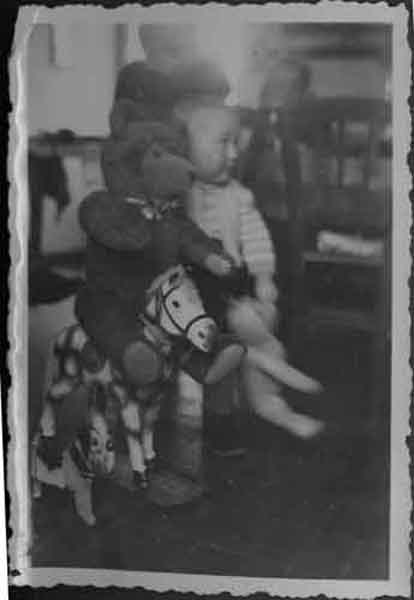Petit enfant et ses jouets reçus pour Noël entre 1948 et 1951 à Aytré