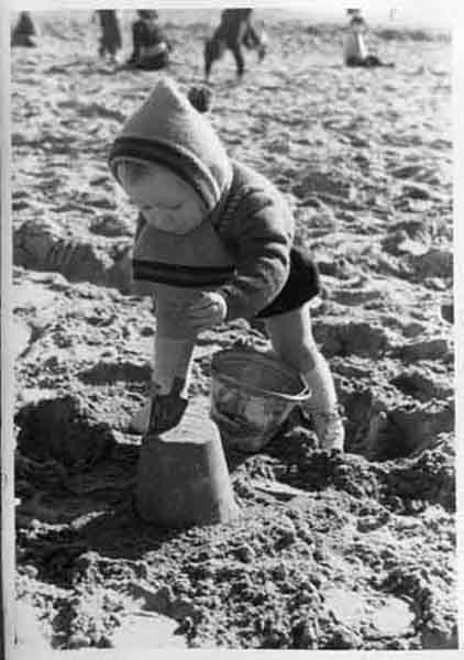 Un petit enfant sur la plage entre 1948 et 1951 à la Plage de la Concurrence à La Rochelle
