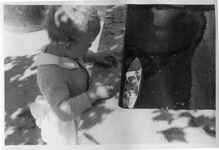 Un petit enfant joue avec un petit bateau dans un bassin à Aytré entre 1948 et 1951