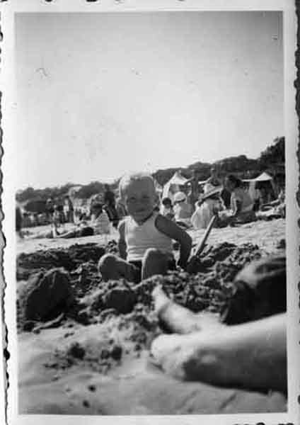 Un bébé sur la plage de Fouras entre 1948 et 1951