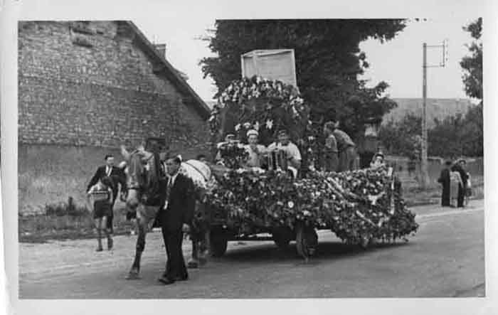 Musiciens sur un char du Corso fleuri à Aytré entre 1948 et 1951