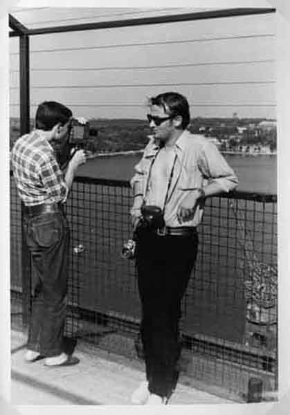 Deux jeunes touristes sur un pont grillagé à Stockholm en Suède en août 1968