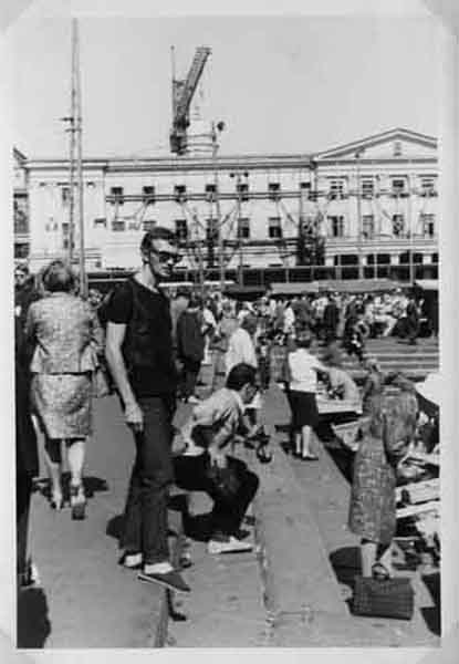 Touriste sur le port d'Helsinki en Finlande en août 1968