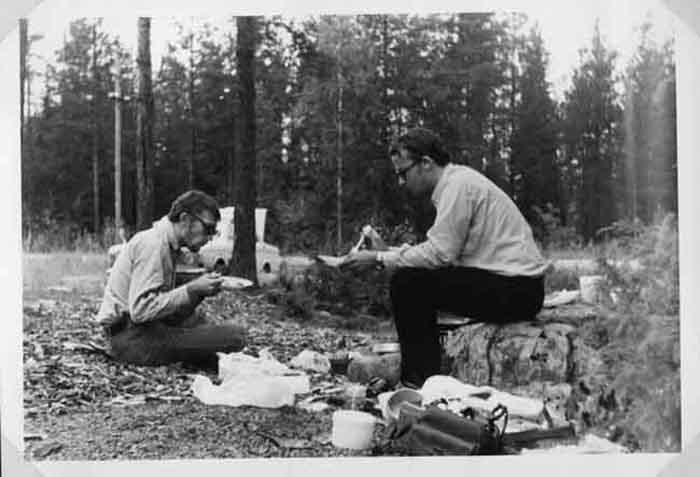 Deux jeunes touristes en forêt finlandaise en août 1968