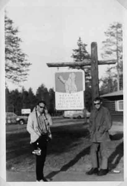 Deux jeunes touristes au passage du cercle polaire en août 1968 en Finlande