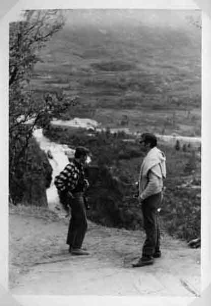 Deux jeunes touristes non loin de la cascade de Voringfossen en Norvège en août 1968